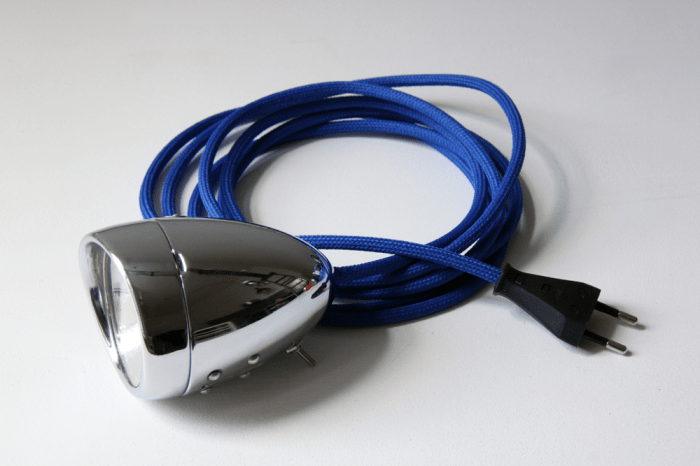 The type of light is optional. It can be halogen which emits certain heat but can be dimmed. Or it can be LED that is energy saving and has a cooler light quality. The color and length of the textile cable is also optional.