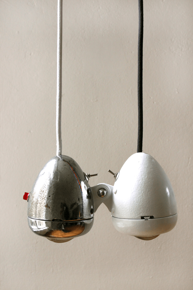 The lamps are from different design periods. I decided to stick with the cone-shaped bicycle lamps. That means the oldest lamp is originating from the 30s and the youngest from 70s. They vary in sizes, colors and how well preserved they are.