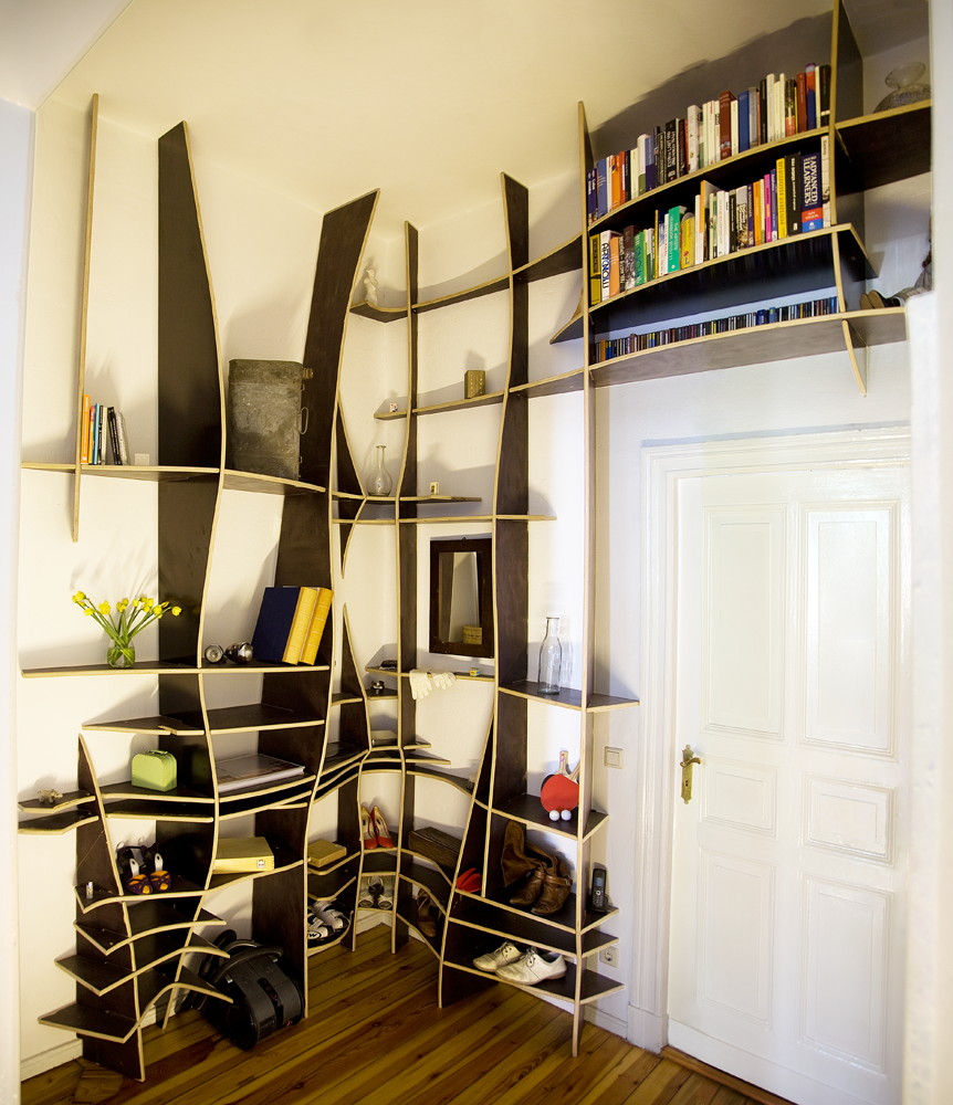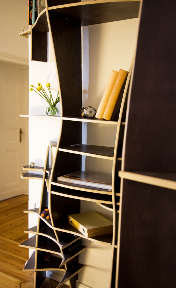 Together they form a 3D-puzzle which doesn’t use any binders and is structurally sound without being fixed to the wall.