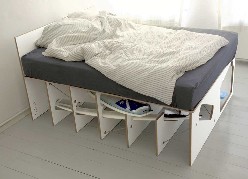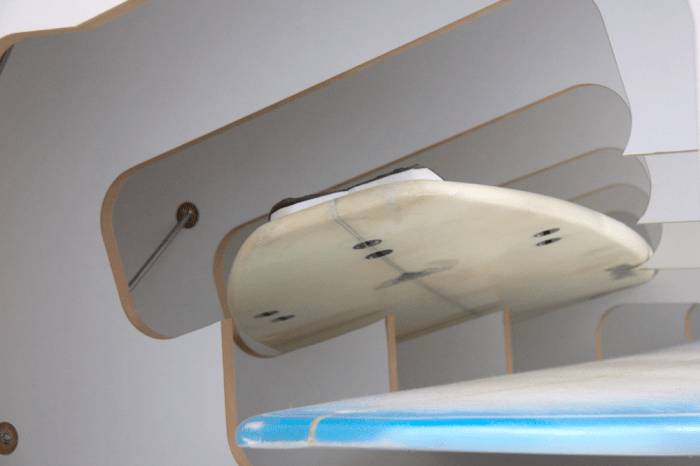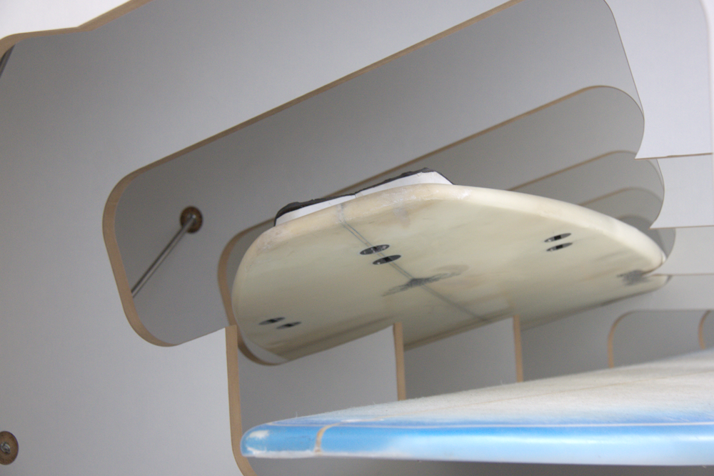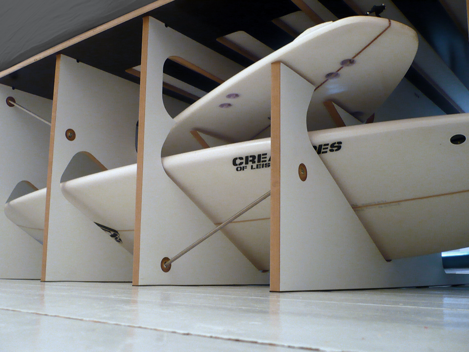 The bed is specially designed for this particular surfboards that vary in shape and size – and were, as most of the surfboards if not in use – always in the way.